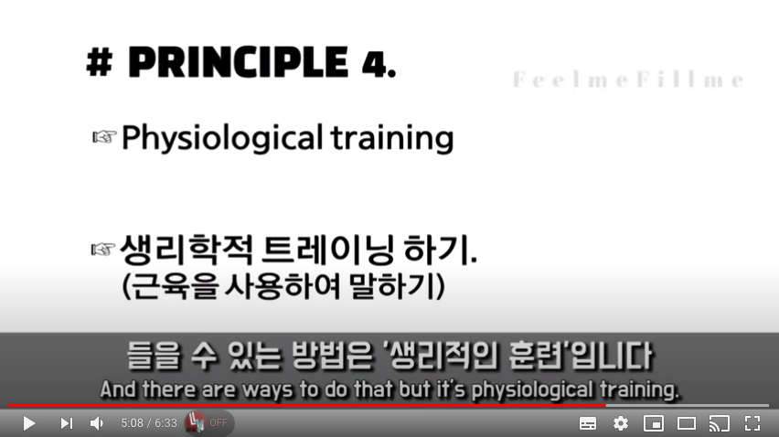 [원칙 1.] Focus on language content that relevant to you. - 당신과 연관 있는 내용에 집중하기. [원칙 2.] Use your new language as a tool to communicate from day 1. - 새 언어를 도구로 활용하여, 첫날부터 즉시 소통하기. [원칙 3.] When you first understand the message you will unconsciously acquire the language. - 당신이 처음 뜻을 '이해'하게 됐을 때, 무의식적으로 그것을 받아들이게 될 것. [원칙 4.] Physiological training. - 생리학적 트레이닝 하기. (근육을 사용하여 말하기) [원칙 5.] Psycho-physiological state matters. - 심리 생리학적 상태의 중요성. (배우기 좋은 심리 생리학적 컨디션 유지)