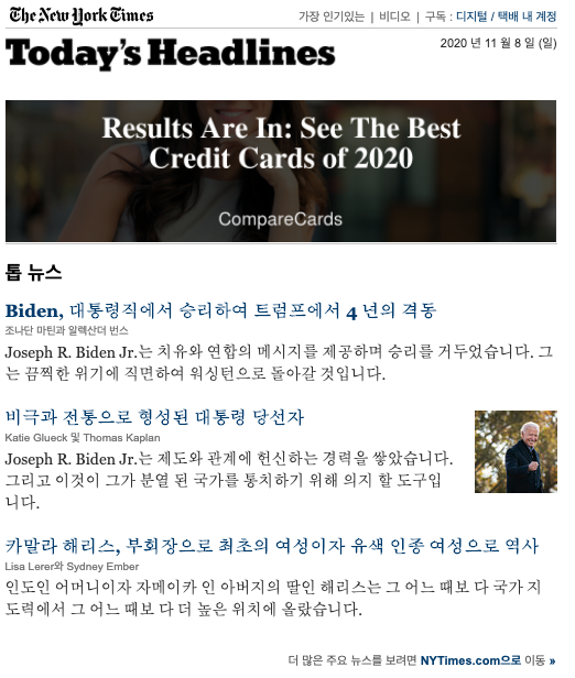 뉴욕타임즈의 Today's Headlines를 이메일로 받아보는 장점