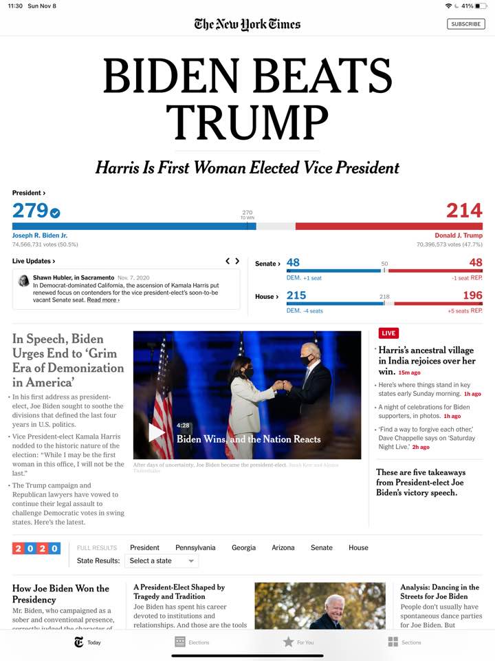 Biden Wins Presidency, Ending Four Tumultuous Years Under Trump By Jonathan Martin and Alexander Burns Joseph R. Biden Jr. achieved victory offering a message of healing and unity. He will return to Washington facing a daunting set of crises.