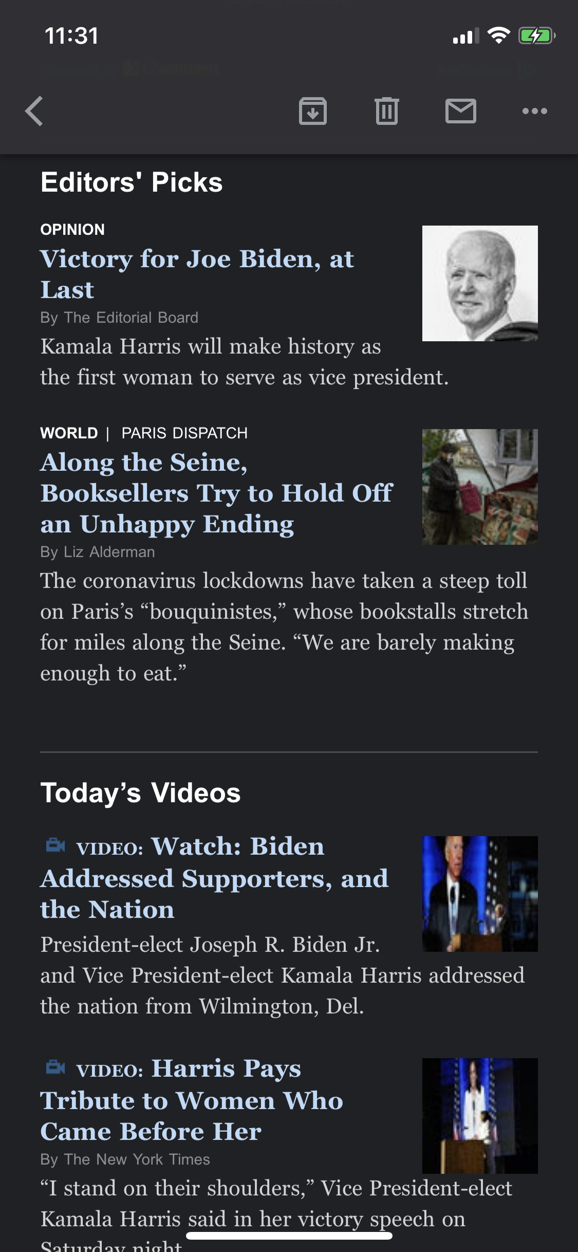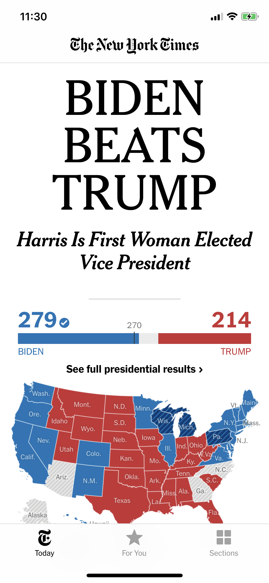 뉴욕타임즈 앱 - 아이폰11 프로 화면