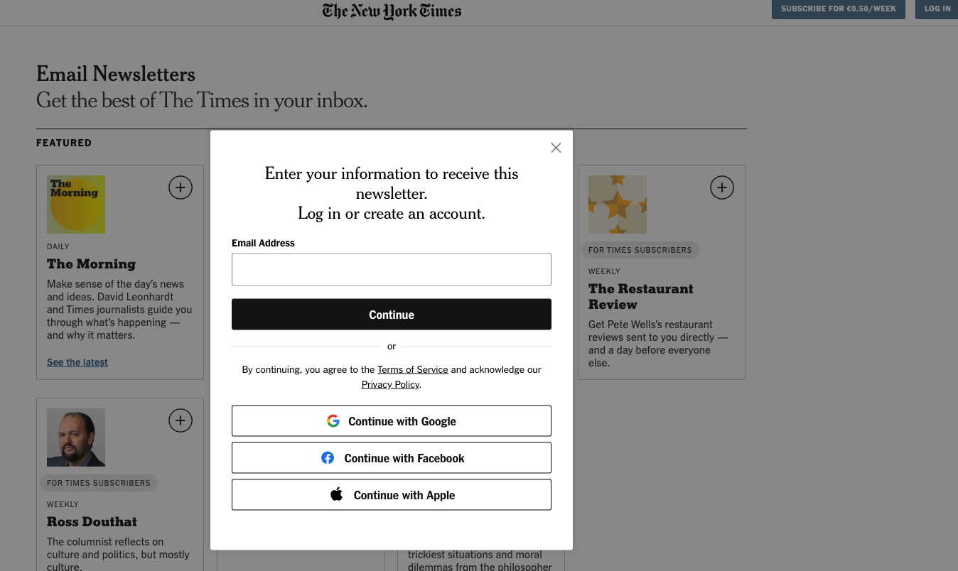그래서 제가 선택한 방법은 이메일로 뉴욕타임스의 헤드라인을 매일 받아보는 것입니다. 이 방법은 무료입니다.